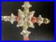 2 VINTAGE GERMAN CANDY CONTAINERS. BOTH ARE COVERED WITH VENETIAN DEW. THE SNOWMAN BOBBLE HEAD MEASURES 7.5 TO THE TOP OF HIS HAT AND EXCEPT FOR PART OF HIS GREEN TISSUE BOW TIE – HE IS IN VERY GOOD + CONDITION. CHENILLE ARMS, BLUE PLASTIC PIPE, CARDBOARD TOP HAT, AND A STICK FOR A CANE. […]